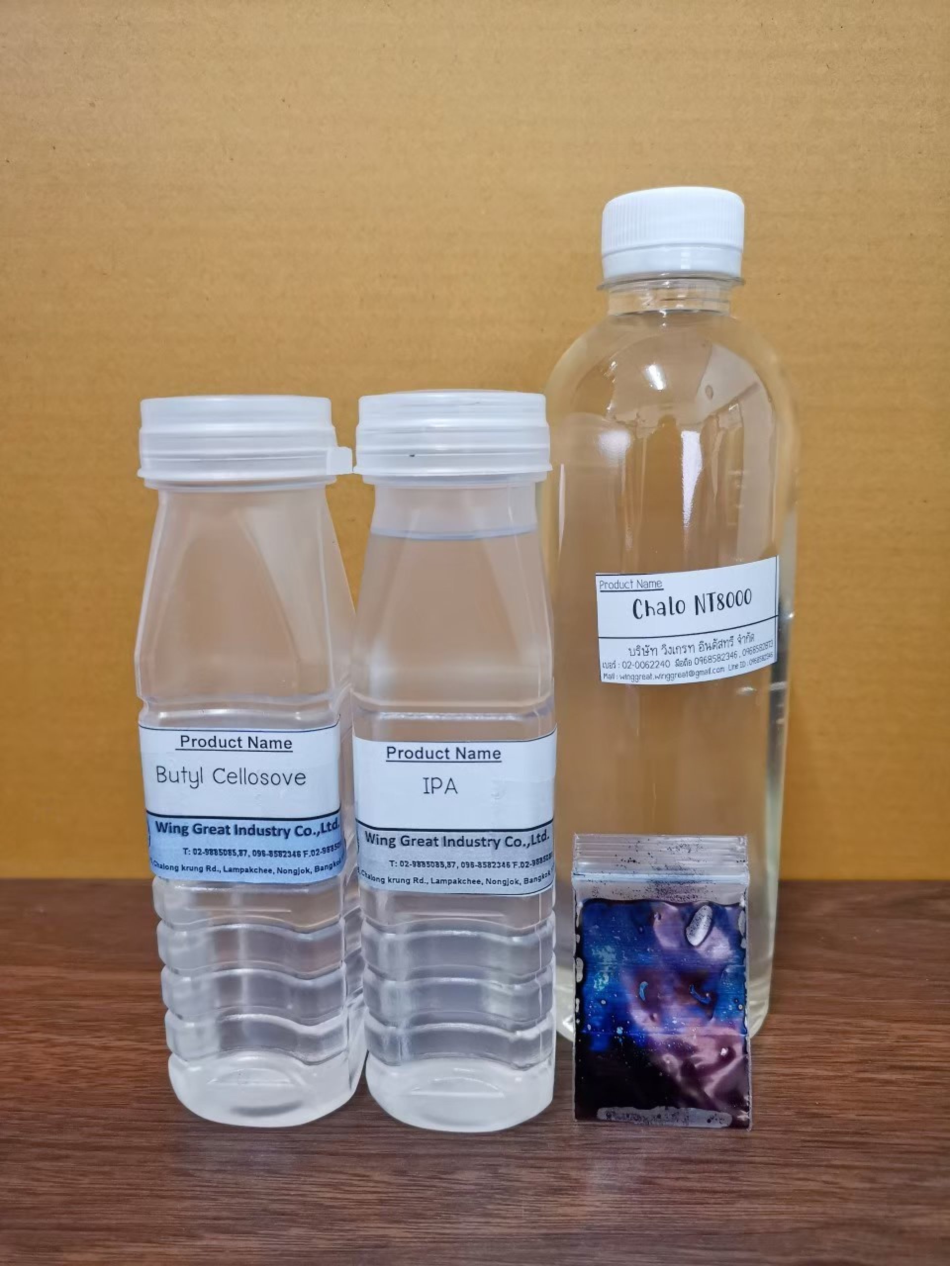 1. นำ Chalo NT8000 กับ Butyl Cellosolve มาผสมกันเติมน้ำเล็กน้อยเพื่อให้คนง่ายขึ้น